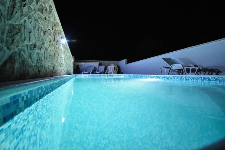Prodaje se prekrasno sređen kompleks za iznajmljivanje koji se sastoji od 3 kućice u nizu, svaka veličine 80m2. Kućica u nizu sastoji se od 2 spavaće sobe, kuhinje spojene sa dnevnim boravkom, kupaonice i terase. Također se u kompleksu nalazi velika samostojeća kuća koja se sastoji od 3 apartmana ukupne površine 258m2. U prizemlju kuće se nalazi trosoban apartman te garaža dok su na katu smještena 2 dvosobna apartmana sa dvije spavaće sobe. U dvorištu objekta je smješten zajednički bazen veličine 24m2 koji je na raspolaganju svim gostima kao i velika vanjska kuhinja sa grillom i pečenjarom. Dvorište je prostrano te se prostire na 888m2. Osigurana su 2-3 parkirna mjesta za svaku stambenu jedinicu. Voda je dostupna putem bušotine ali i 4 gusterne. Odvod je također osiguran putem 4 septičke jame. Apartmani i kućice u nizu su klimatizirane, posjeduju dimnjak te su u potpunosti opremljene za boravak. Također posjeduju kartice za struju kako bi se lakše definirala potrošnja. Papiri i vlasništvo uredno, kuće su kategorizirane i odmah spremne za preuzimanje.