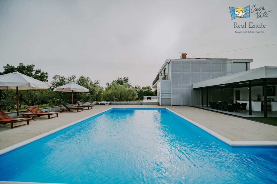 Također, tu je i bazen od 60m2 oko kojeg se nalazi veliko sunčalište i natkriveni prostor sa roštiljem ukupne površine 200m2.