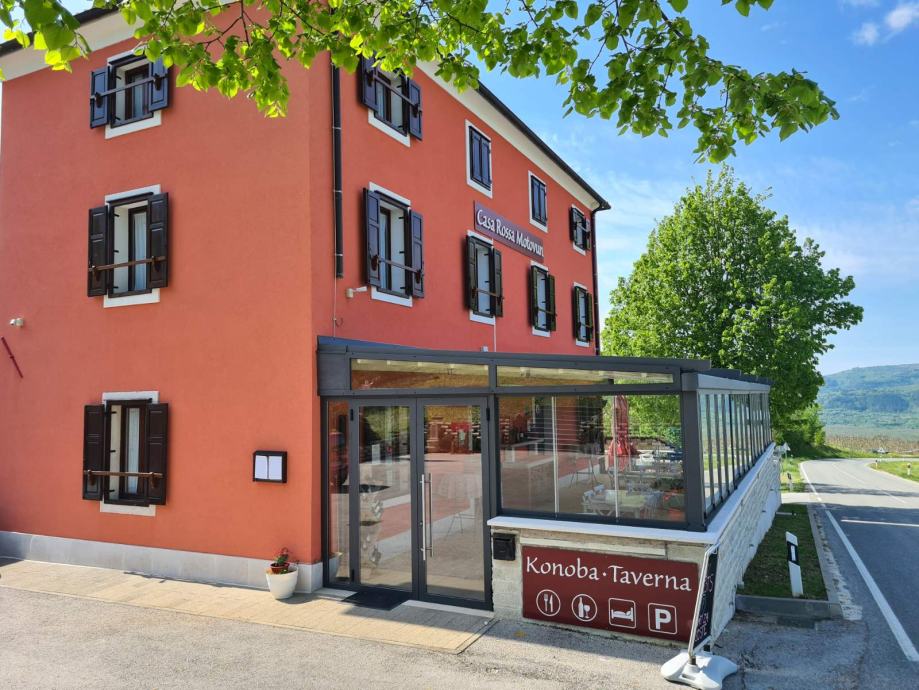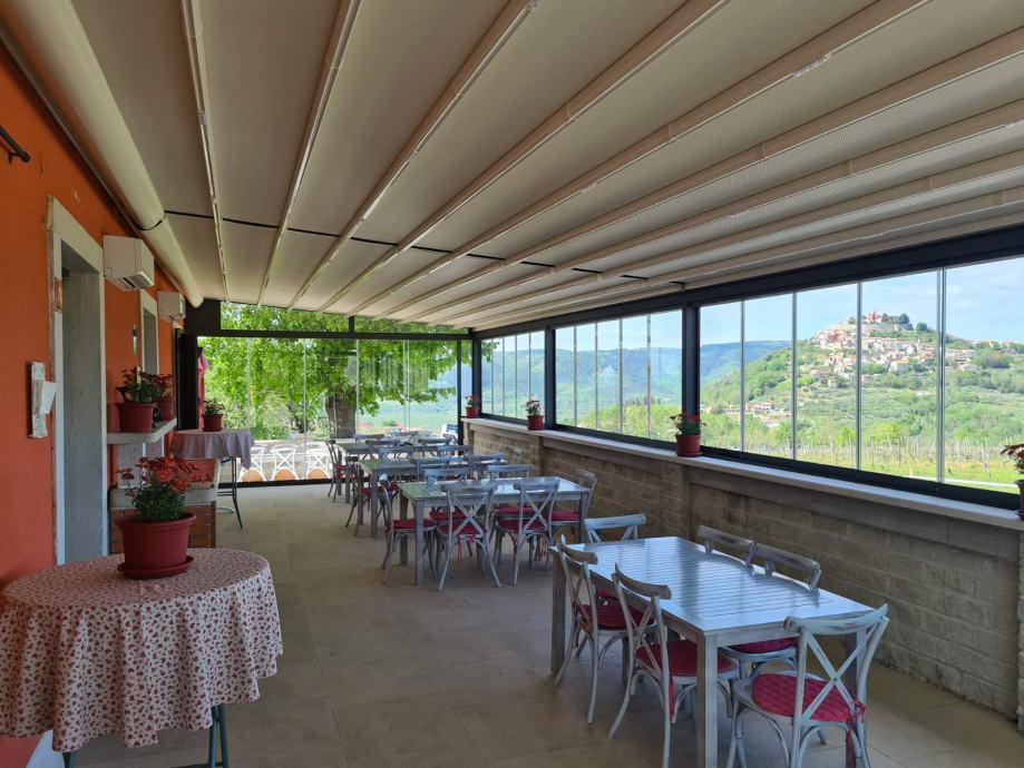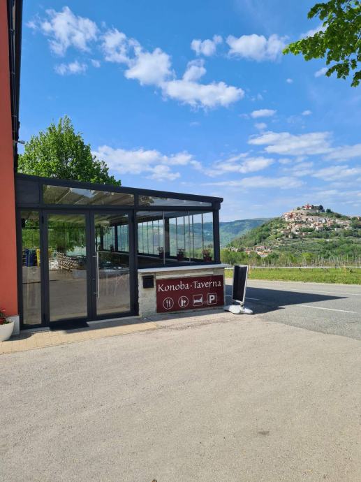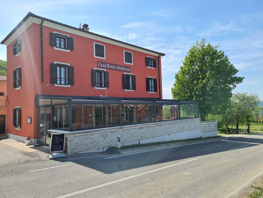 Jedinstveni ugostiteljski objekt na jednoj od najljepših pozicija središnje Istre, s predivnim pogledom, uhodan, kompletno novouređen, potpuno opremljen za cjelogodišnji rad, kategoriziran kao konoba i 8 soba s 16 ležajeva, nova pomična pergola, wine bar, trgovina dugoročno iznajmljujemo. Površina 390 m/2, ostakljena i klimatizirana terasa s pomičnim krovom 100 m/2, ukupno 80 sjedećih mjesta, lounge zona. Ostakljena i klimatizirana terasa. Vlastiti parking, velika okućnica. Vinski podrum s vinskom sefovima. Centralna klimatizacija, solarno i plinsko grijanje sanitarne vode, TV SAT sistem, WIFI mreža, video nadzor. Sav potreban ugostiteljski inventar. www.casarossa.hr casarossa.motovun@gmail.com