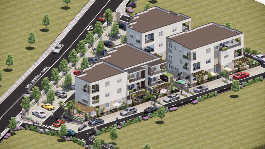 - Uz svaki stan dostupno je jedno parkirno mjesto koje je uključeno u cijenu + mogućnost kupnje dodatnog parking mjesta.