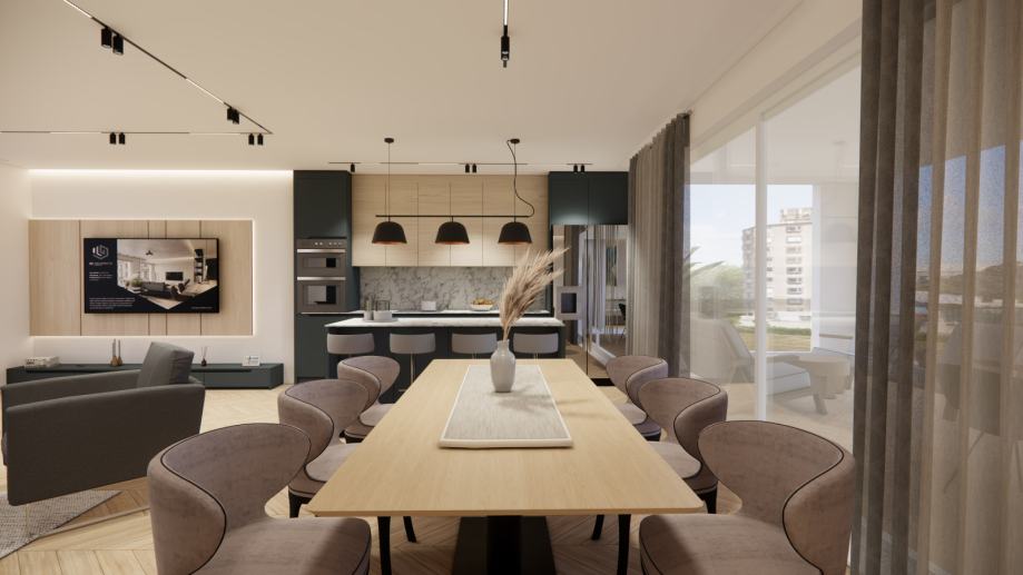 - Premium aluminijska stolarija s integriranim PVC elementima i troslojnim staklima jamči vrhunsku energetsku učinkovitost te savršenu zaštitu od buke.