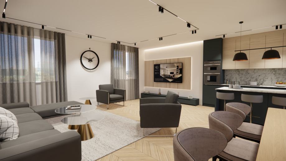 - Ekskluzivni premium troslojni parket unosi toplinu i eleganciju u sobe, dok kupaonice odišu luksuzom zahvaljujući vrhunskoj premium keramici.