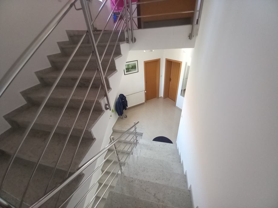 - 1.KAT - sastoji se od hodnika, 8 soba (kuhinja s blagovaonicom i dnevnim boravkom s izlazom na balkon od 51,26m2 , a ostalih sedam soba su površine od 18m2 do 27m2) i 6 sanitarnih čvorova