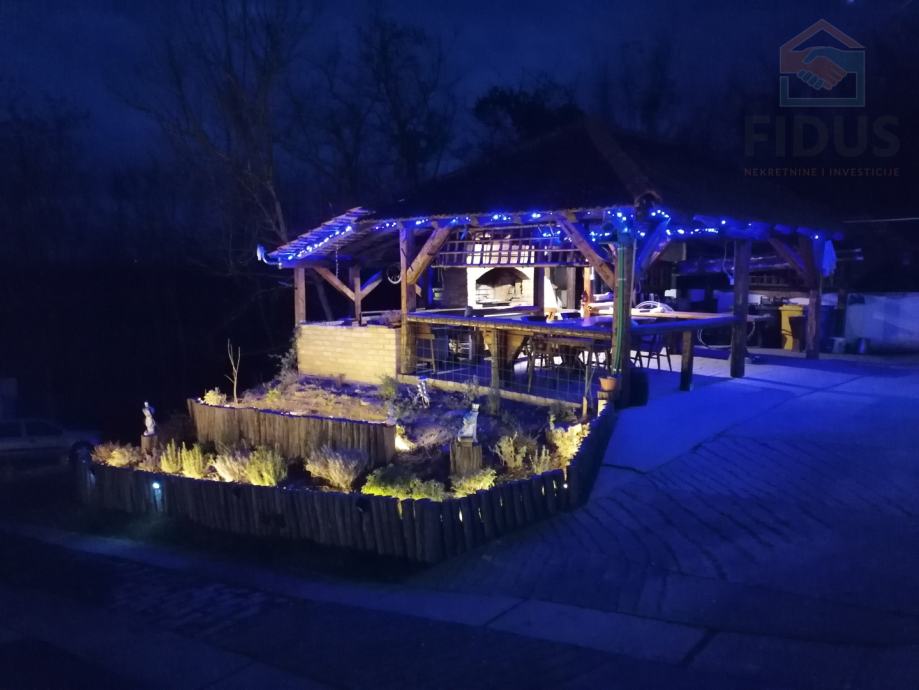 Na "glavnoj" čestici nalazi se nekoliko objekata: zgrada od 159 m2 s nadstrešnicom od 45 m2 i pečenjarom, manja kuća od 58 m2 s nadstrešnicom od 14 m2 i pečenjarom, apartman površine 38 m2 što ukupno čini 255 m2 stambenog prostora i 64 m2 nadstrešnica te spremište, drvarnica i gospodarski objekti. Za osvježenje preko ljeta tu je i bazen površine 32 m2 ( 8 x 4).