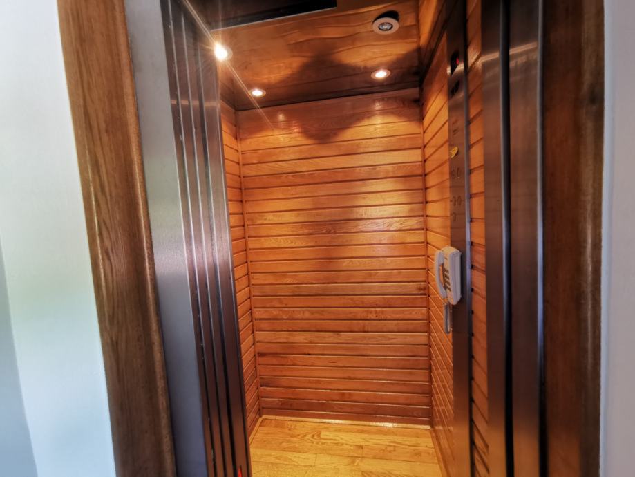 Poslovni i stambeni dio povezani su i vanjskim stepenicama, a i unutarnjim liftom, obučenim u drvo.
