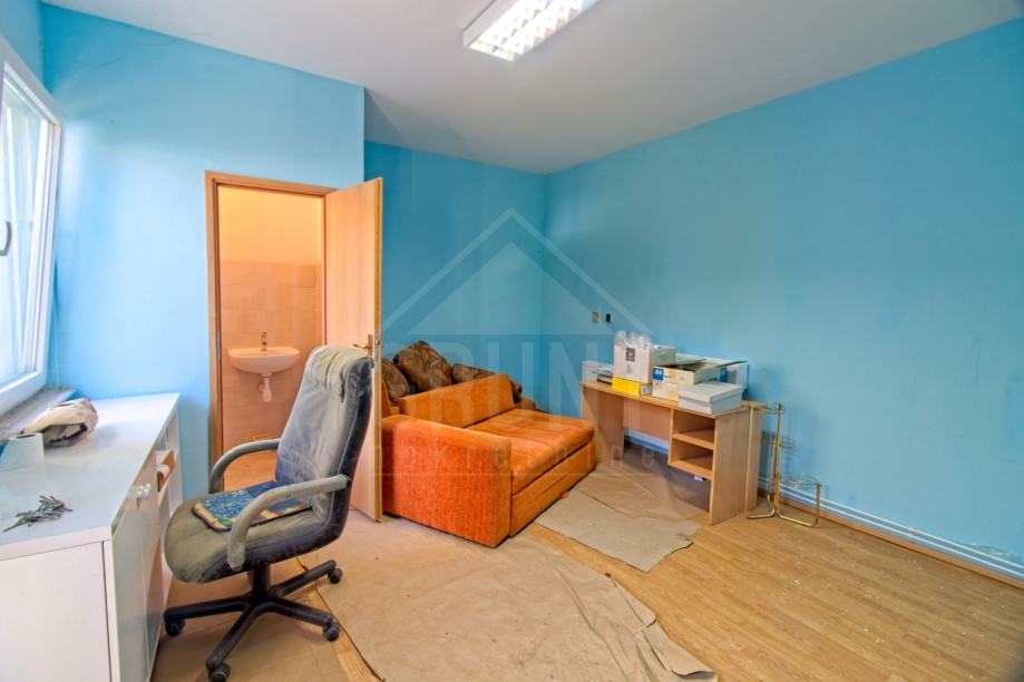 Poslovni dio - sastoji se od poslovnoga prostora (uredi, radionice, čajna kuhinja, sanitarni čvor) ukupne površine od 125 m2 te ukupno 4 prostorije.