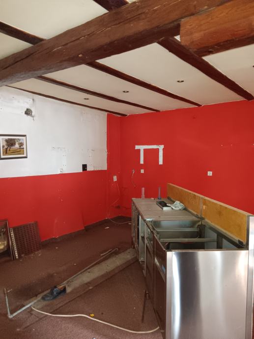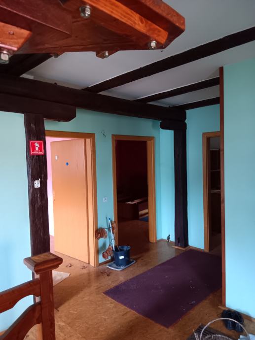 • U prizemlju zgrade su poslovni prostori s pripadajućim skladištem i sanitarnim čvorom, dok se na katovima i u potkrovlju nalaze sala, kuhinja,