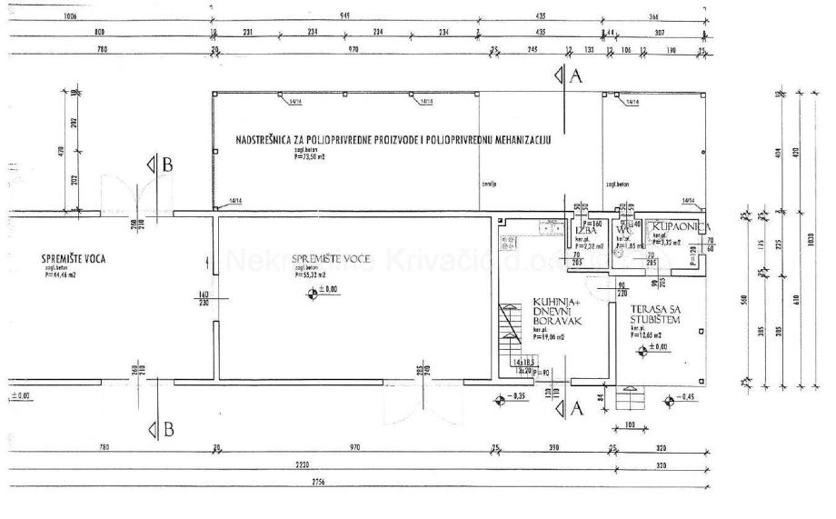 Drugi dio objekta je gospodarske namjene koja se bavi uzgojem voća i pripremom budućih sadnica voća i ukrasnog bilja. Sastoji se od tri zatvorena spremišta za voće od kojih je jedan ( 55,32m2) hladnjača sa rashladnim uređajima u fukciji, te zatvorenom nadstrešnicom za ambalažu i poljoprivrednu mehanizaciju. Prostor je moguće koristiti za bilo koju proizvodnu djelatnost ili samo hladno skladište.