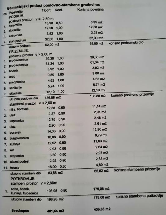 Stambeno poslovni kompleks, u naravi trgovina sa neprekidnim djelovanjem i stambeni dio sa par stambenih cjelina, plus dvorišna stambeno poslovna zgrada. Kompletna dokumentacija uredna, moguća kupnja kreditom banaka. Površina parcele 1345 m2, trgovina, stambeni dio i dvorišna stambeno poslovna zgrada, ukupno 554,60 m2 korisne površine prostora samih objekata.