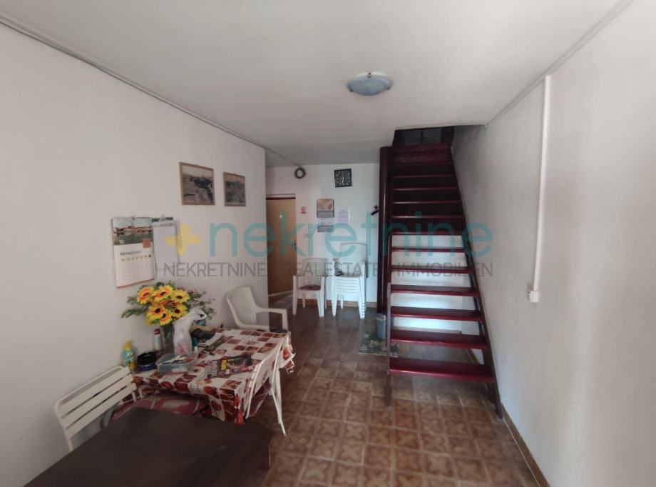 U prizemlju se nalazi veliki poslovni prostor od dva dijela, glavni dio od 128 m2 sa dva sanitarna čvora, te drugi poluzatvoreni prostor od 116 m2. U stražnjem dijelu nalazi se dvorište i vrt koji mogu biti prenamjenjeni u vlastiti parking u pogledu bavljenja turizmom.