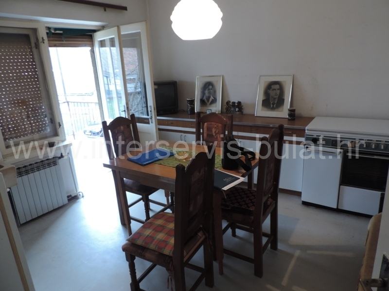 Poslovni prostor smješten je u prizemlju kuće, uz glavnu prometnicu Grada Knina. Unutarnjim stepenicama dolazi se do prvog kata gdje se nalazi dvosoban stan, koji se sastoji od kuhinje s blagovaonicom, dnevne sobe, kupaonice, ostave te terase površine 12m2. Poželjno je renoviranje.