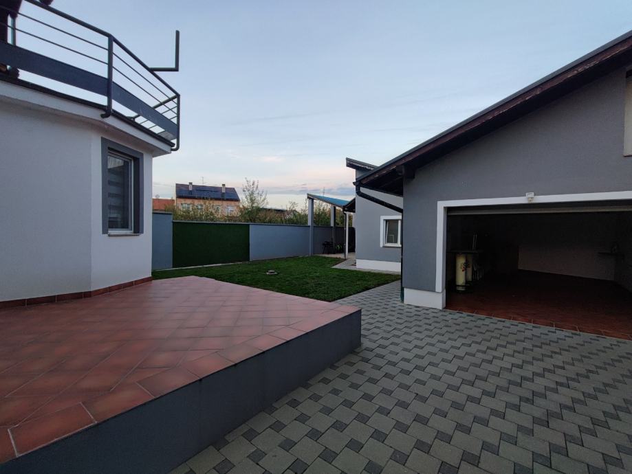 Kući pripada 254 m2 dvorišta, garaža, nadstrešnica i pomoćne prostorije. Svi priključci u stambenom i poslovnom dijelu su zasebni.