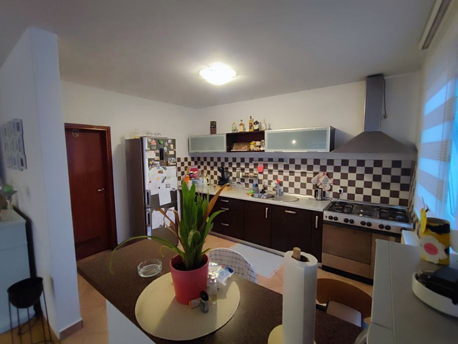 U prizemlju se nalazi predsoblje, ostava, velika kupaonica s novim kombi bojlerom, veliki dnevni boravak koji ima izlaz na terasu- dvorište, blagovaonica, kuhinja i ostava. Grijanje je centralno plinsko. Ukupna površina prizemlja je 95 m2.