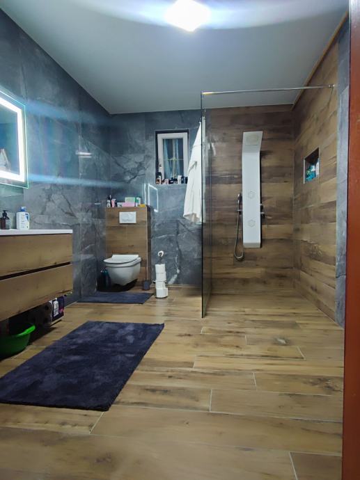 Cijeli gornji kat zamišljen je kao 4 apartmana za iznajmljivanje, stoga svaka soba i ima vlastitu kupaonu.