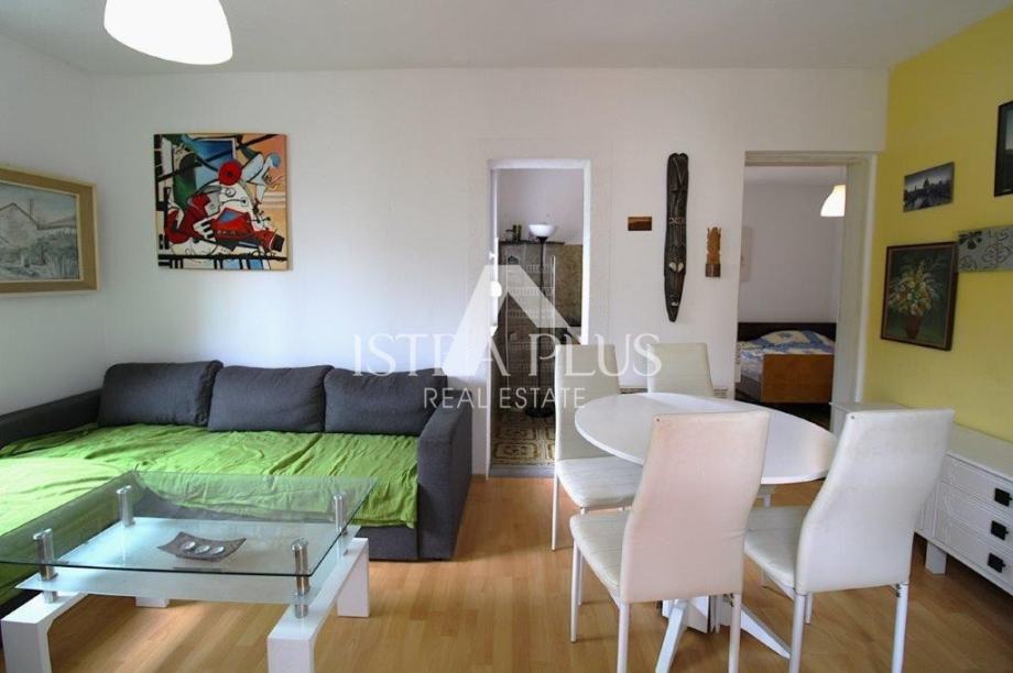 Stan se sastoji od komfornog hodnika, renoviranog kupatila, 2 spavaće sobe od kojih jedna ima vlastiti balkon ,blago uvučene kuhinje, blagovaona sa dnevnim boravkom izlaz na balkon gdje se nalazi spremište