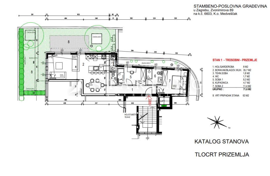 Prodaje se trosoban stan površine 71.60 m² u luksuznoj novogradnji PROJEKT RUSANOVA, smješten je u prizemlju stambene zgrade s ukupno tri kata.