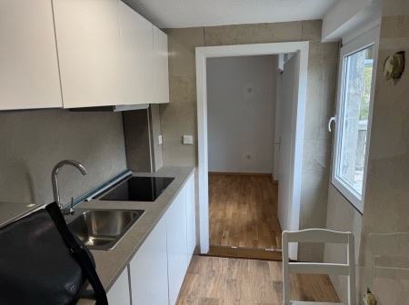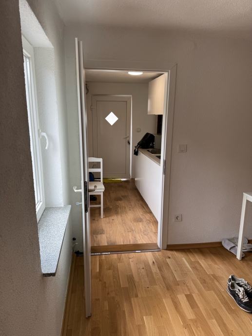 Ovaj kompaktan, pažljivo organiziran stan je idealan za jednu osobu ili maksimalno dvije koje žele udobnost uz privatnost i uživanje u terasi okruženoj mirom i zelenilom – usred grada. Uz polog od 500€ najmoprimac treba sam kupiti krevet kakav želi.