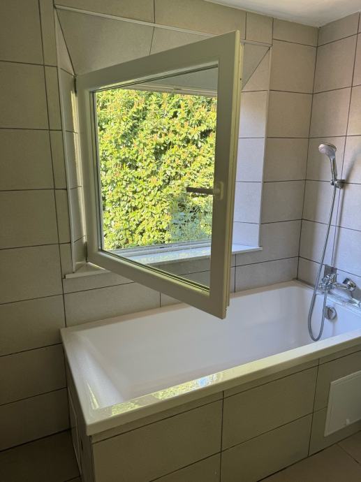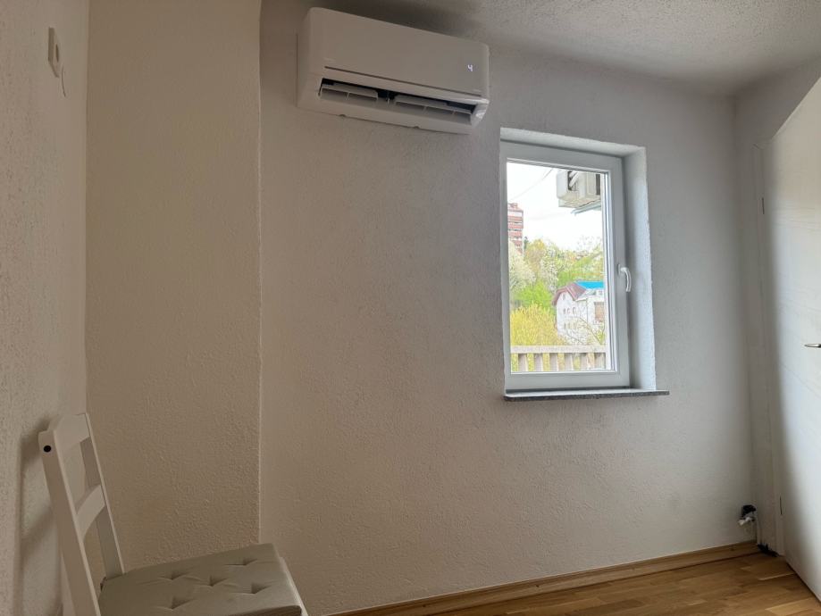 • svijetlu sobu s parketom i dodatnim prozorom u radnoj niši koja gleda na zelenilo – idealno mjesto za rad ili čitanje.