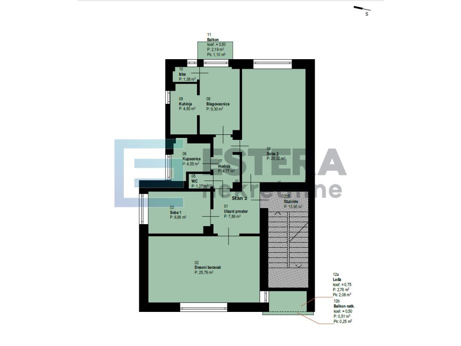 - izrađen je novi etažni elaborat (dostupan na zahtjev) u kojem su stanu pridodani kvadrati spremišta te se trenutno upisuje u zamljišne knjige
