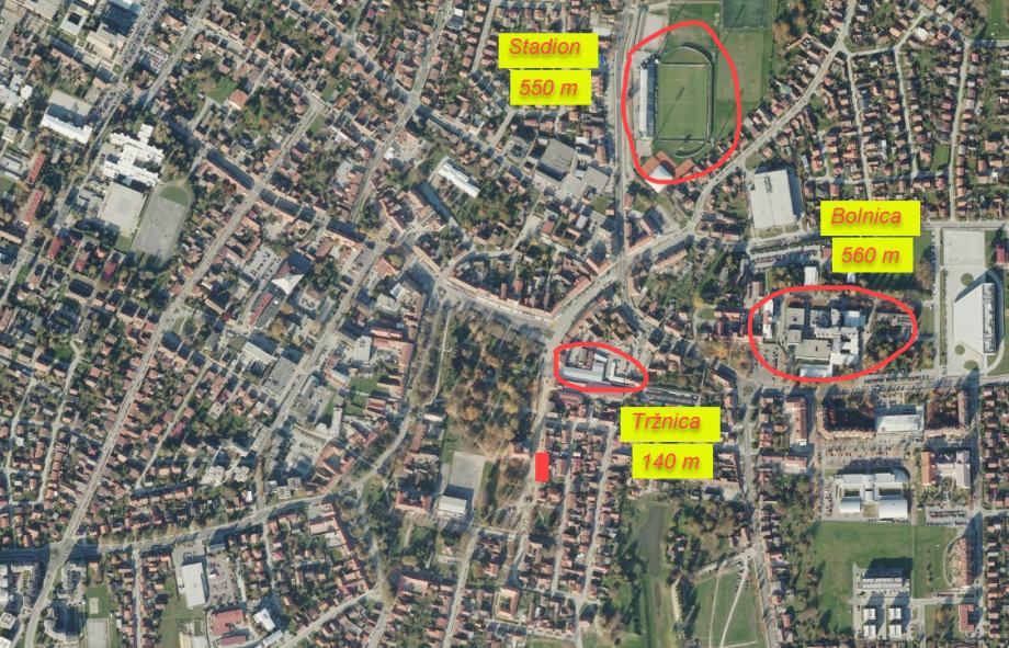 Kroz visoke prozore pruža se prekrasan pogled na centralni park, u blizini su stari gradski bedemi (Sajmište), osnovna škola sa svojim sportskim igralištem, tržnica te sam centar na svega 200 m. U neposrednoj blizini su i sve gradske službe, vrtić, škole (osnovna i gimnazija), bolnica, stadion sa teniskim igralištem.