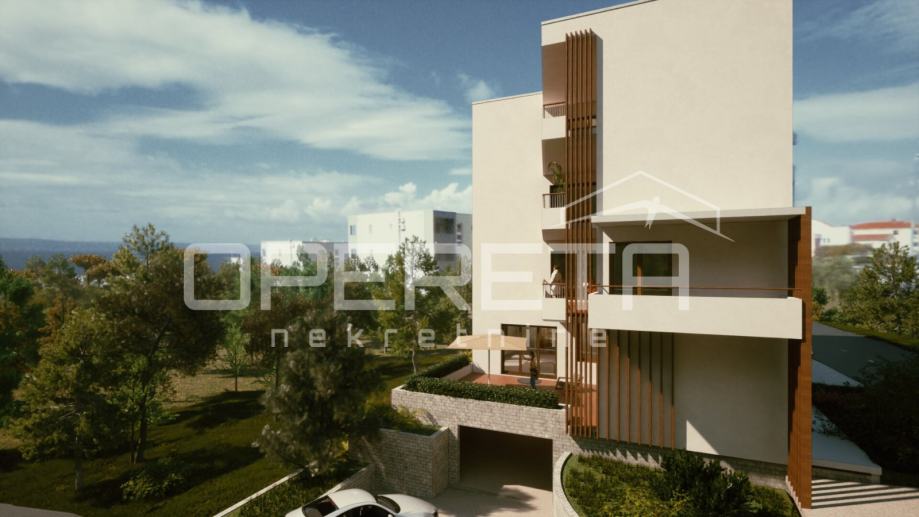 Zgrada je projektirana prema višim standardima gradnje, s liftom koji povezuje sve etaže, uključujući garažni dio, što omogućuje jednostavan i praktičan pristup stanu. Velike staklene površine doprinose svijetlom i prozračnom ambijentu, dok kvalitetni materijali osiguravaju dugotrajnost i udobnost stanovanja.