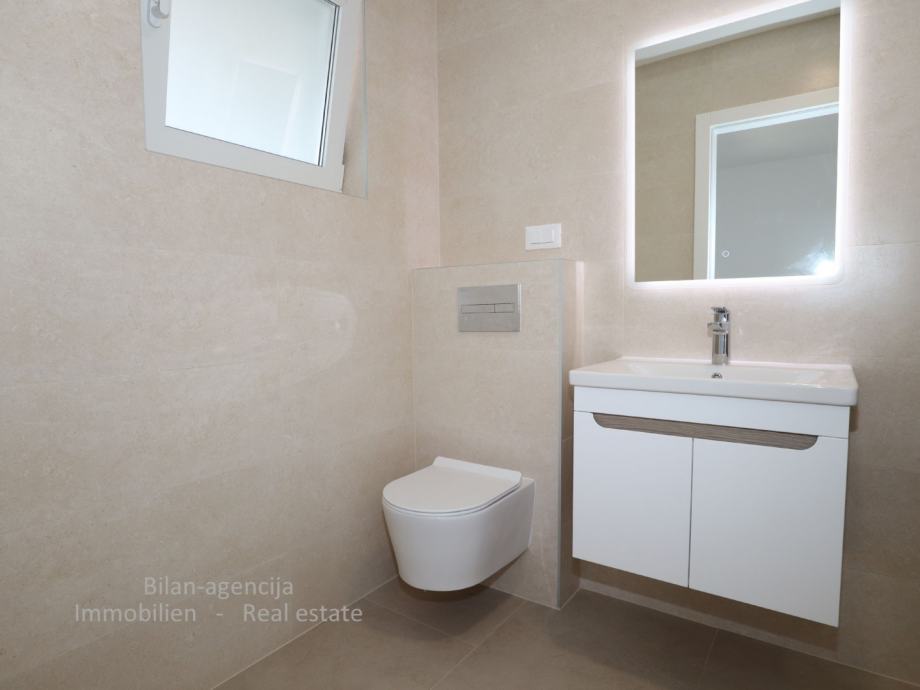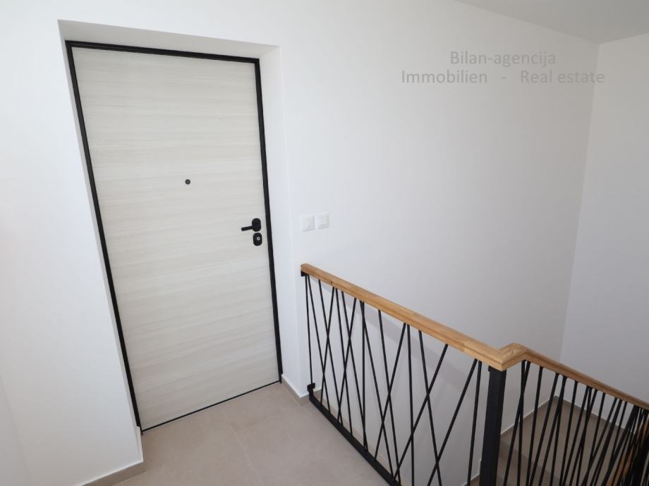 Stanu pripadaju 2 ostave u podrumu ukupne površine 27 m2 i parkirno mjesto. Kvalitetna i suvremena gradnja, podno grijanje, klima inverter uređaji u svim prostorijama, kvalitetna keramika i kupaonska oprema, prozori i vrata sa elektro roletama i zaštitom protiv insekata.