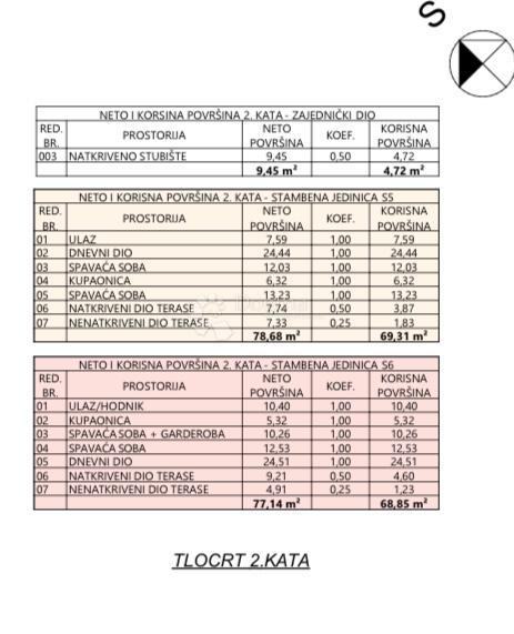 Na prodaju je prostran dvosoban stan na prvom katu moderne novogradnje, označen kao stambena jedinica S5. Smješten u mirnom i kvalitetno planiranom stambenom objektu, ovaj stan površine 78,68 m² (korisne površine 69,31 m²) idealan je za obiteljski život ili kao investicija za dugoročni najam.