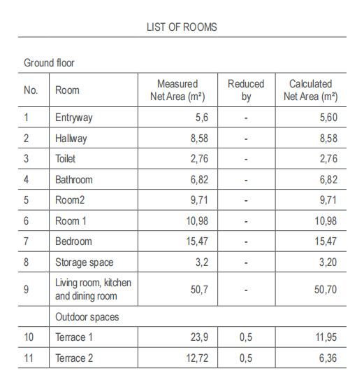 Prostorije:Ulazni dio i hodnik, prostrani open-space dnevni boravak, kuhinja i blagovaonica – 50,7 m², tri spavaće sobe, kupaonica, odvojeni WC, ostava te dvije terase ( 24 m2 i 13 m2).