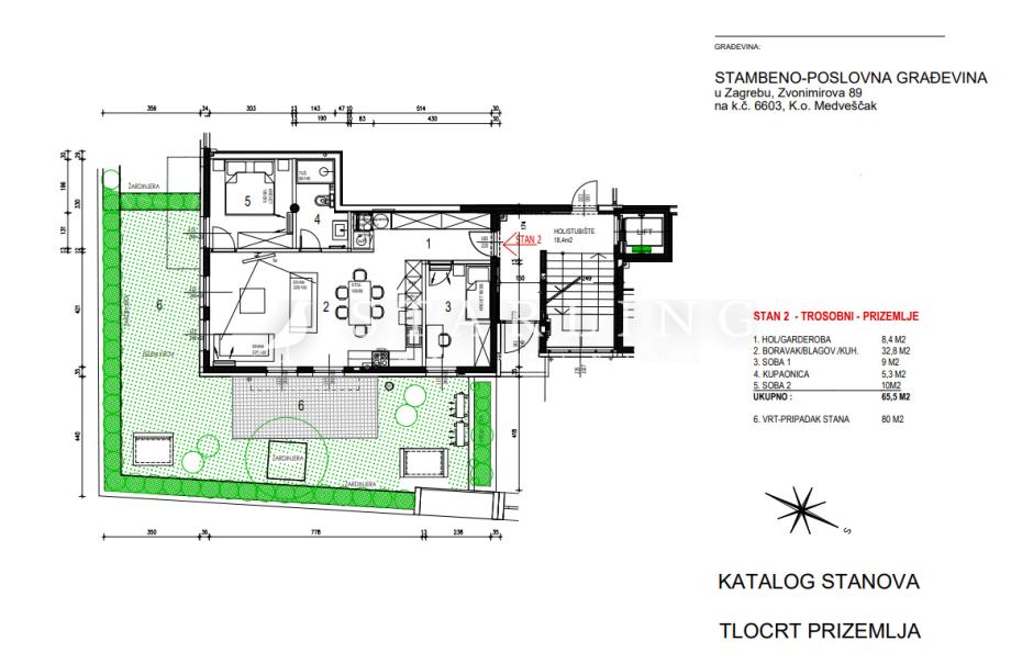 Prodaje se trosoban stan površine 65.50 m² u luksuznoj novogradnji PROJEKT RUSANOVA, smješten je u prizemlju stambene zgrade s ukupno tri kata.