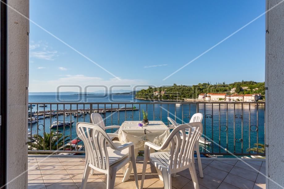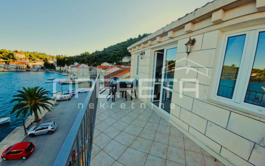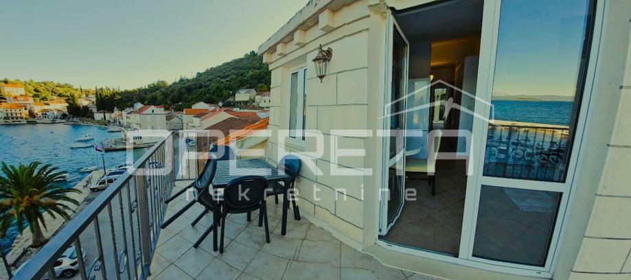 Stan s 2 sobe i terasom, 7 m do mora, pogled na more, Račišće, Korčula (prodaja)
