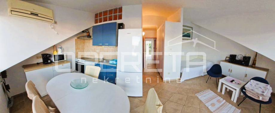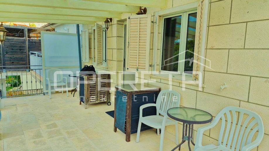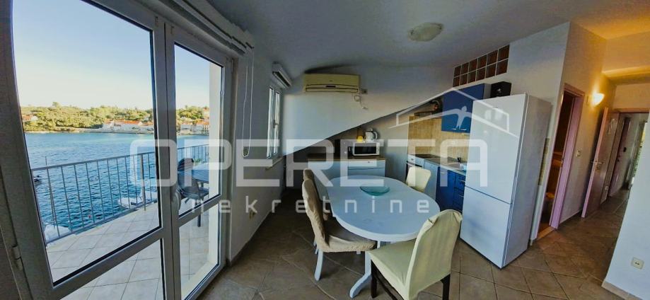 Ova nekretnina je idealna opcija za one koji traže stan za ljetovanje, stalno stanovanje ili kao dugoročnu investiciju u turizam. Blizina mora, balkon s pogledom i prekrasna terasa na stražnjoj strani čine ovaj stan jedinstvenom prilikom. Udaljenost do mora je samo 7 metara, dok je najbliža plaža na svega 15 metara do ulaza.