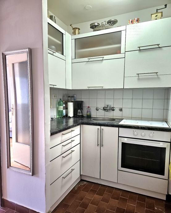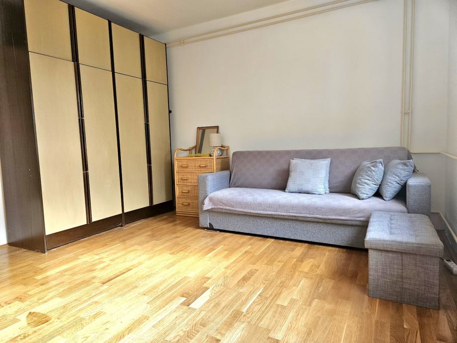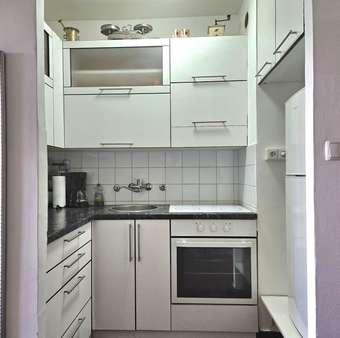 Mali komforan i svijetao stan orijentacije zapad, u uređenoj zgradi s listom, 50m od tramvajske stanice, dostupni svi javni sadržaji - plac, sportski sadržaji, dom zdravlja...plus visoko spremište na katu iznad, u potkrovlju.