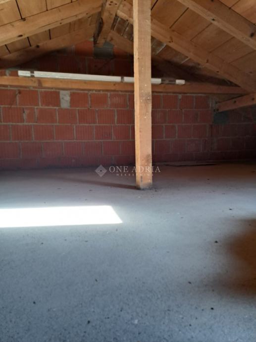 Na prodaju je vrhunski građeni stan s potkrovljem, ukupne površine 97,76 m², koji se nalazi u mirnoj zoni idealnoj za obiteljski život ili investiciju. Dodatna prednost su dva parkirna mjesta i odvojeni priključci (struja, voda, kanalizacija), što jamči privatnost i funkcionalnost.
