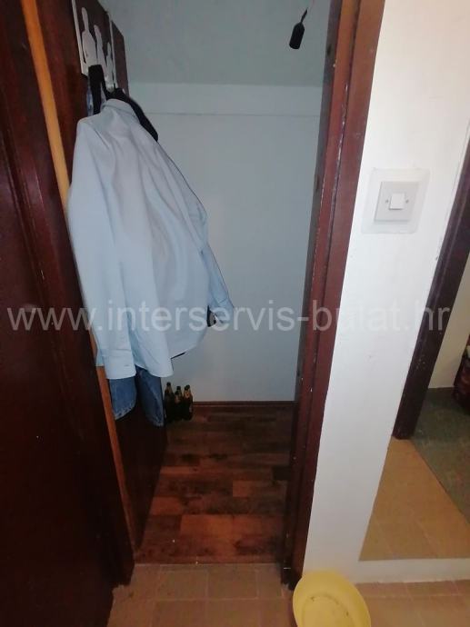 U širem centru Knina, na 6. katu zgrade s liftom, prodaje se stan sa 37,86 m2 stambene površine. Sastoji se od hodnika, manje ostave, spavaće sobe, kupaonice te kuhinje s blagovaonicom. Stanu pripada i drvarnica u suterenu zgrade.