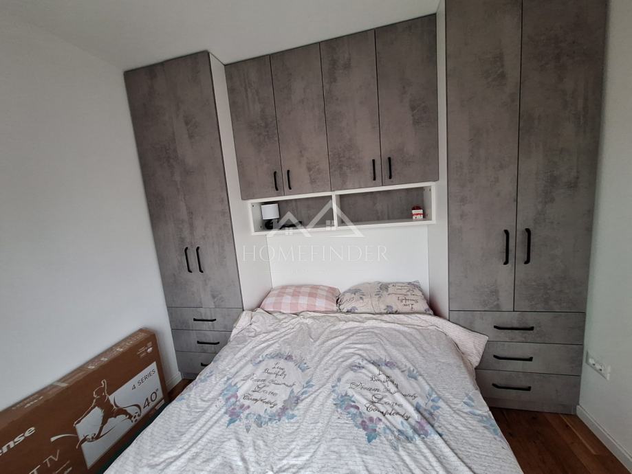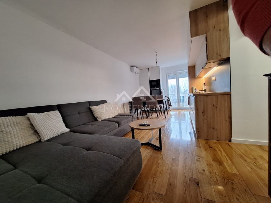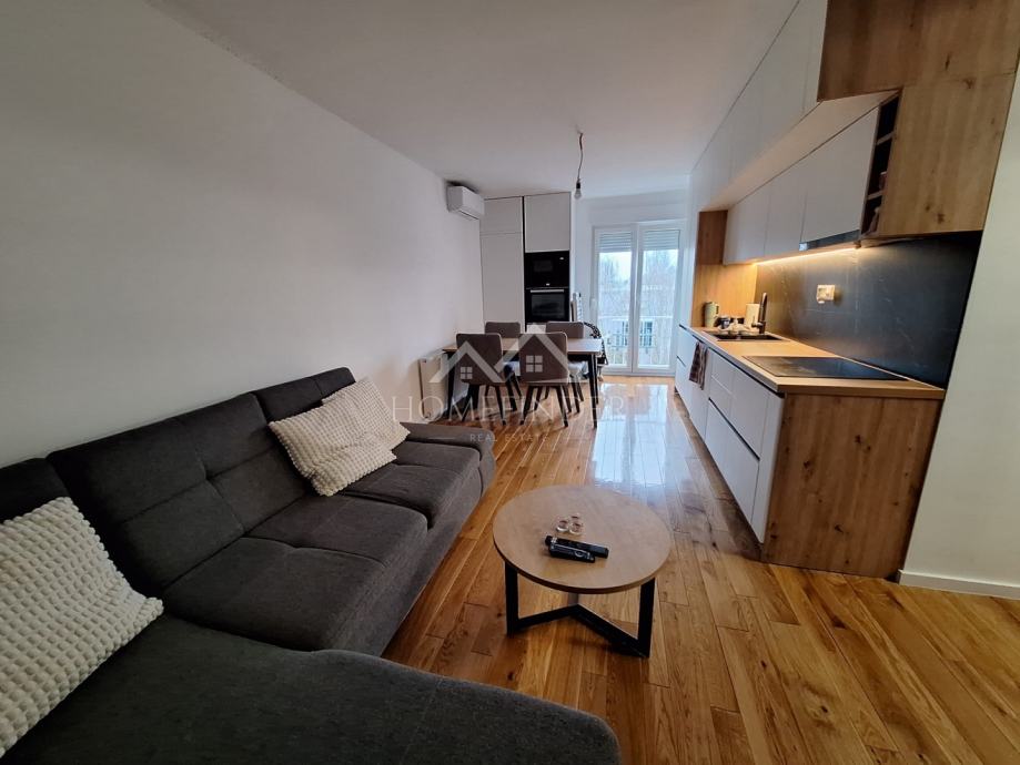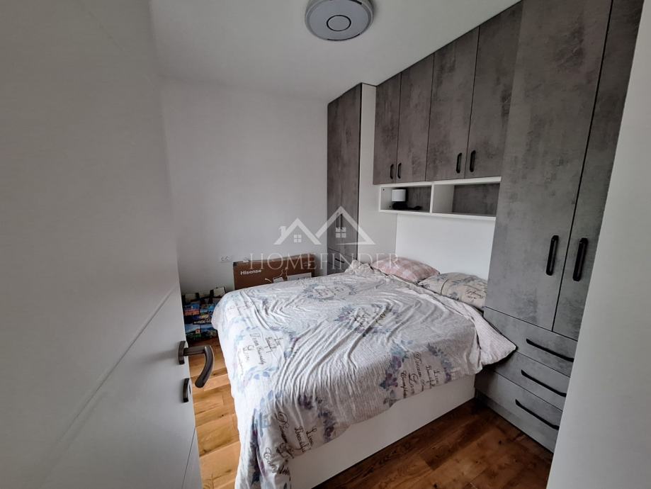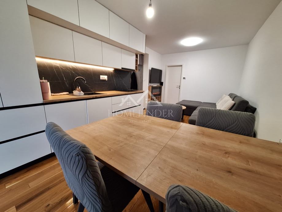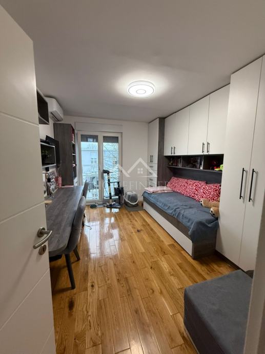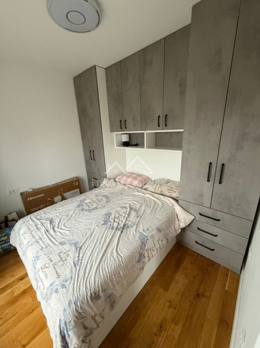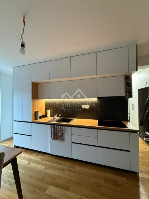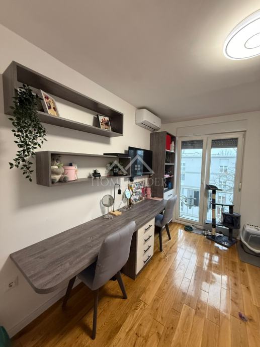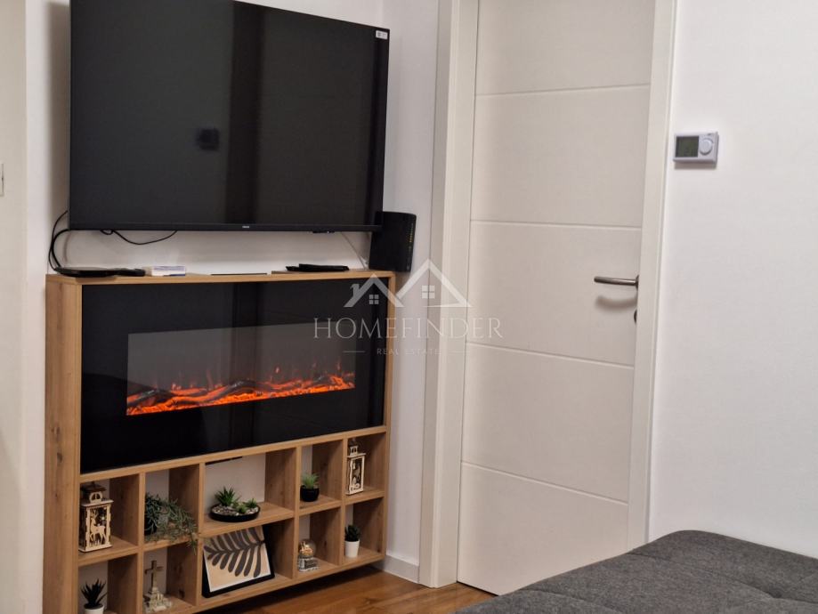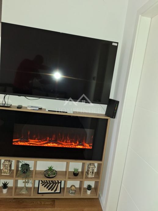 Stan se sastoji od ulaznog hodnika, moderno uređene kupaonice, prostranog dnevnog boravka povezanog s kuhinjom, jedne veće i jedne manje spavaće sobe. Nekretnina je temeljito adaptirana tijekom 2023. i 2024. godine, pri čemu je obnovljeno apsolutno sve – od nove glazure i hrastovog parketa visoke klase u visokom sjaju, do novih instalacija vode i struje. Ugrađena su protuprovalna i protupožarna ulazna vrata, PVC stolarija s roletama i komarnicima, uključujući francuska vrata, kao i potpuno novi sustav grijanja na etažno plinsko grijanje s kondenzacijskim bojlerom i novim radijatorima. Dimnjak je saniran u skladu s važećim standardima, a dodatnu udobnost osiguravaju dvije klima jedinice.