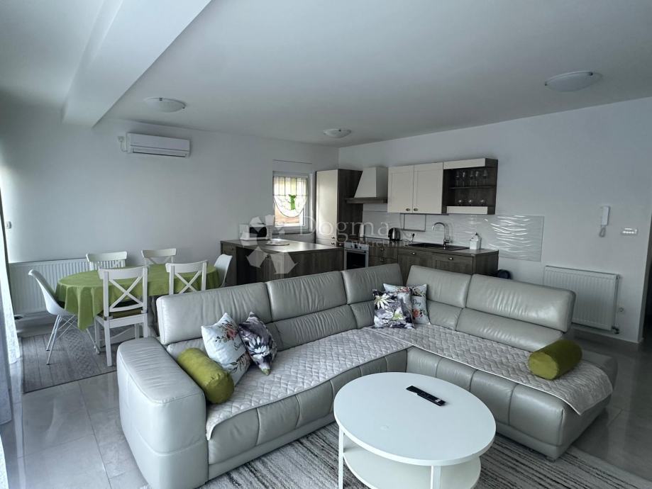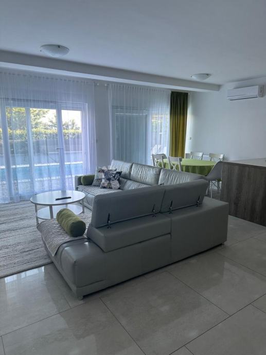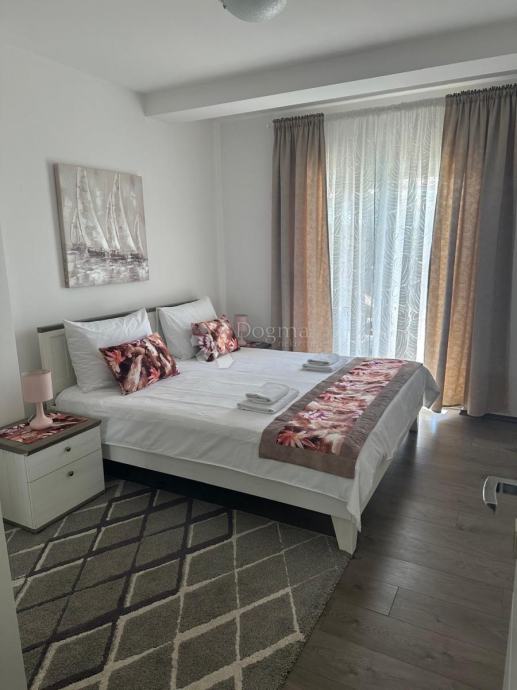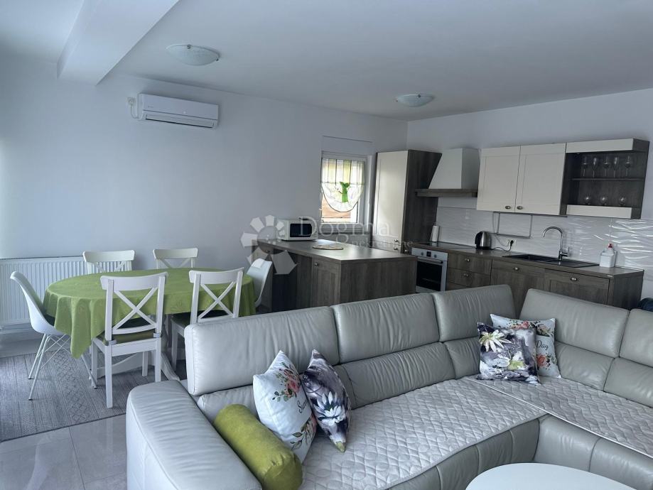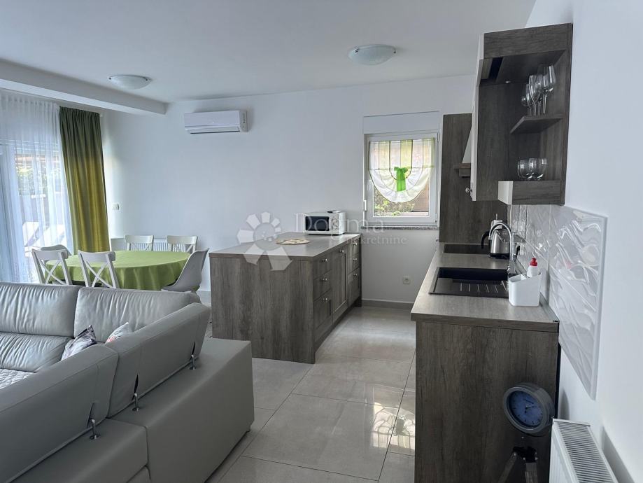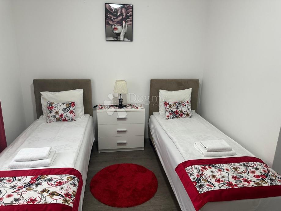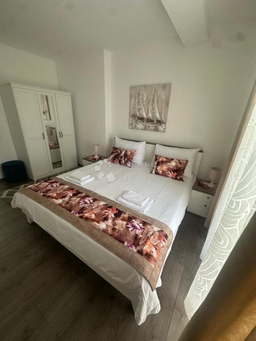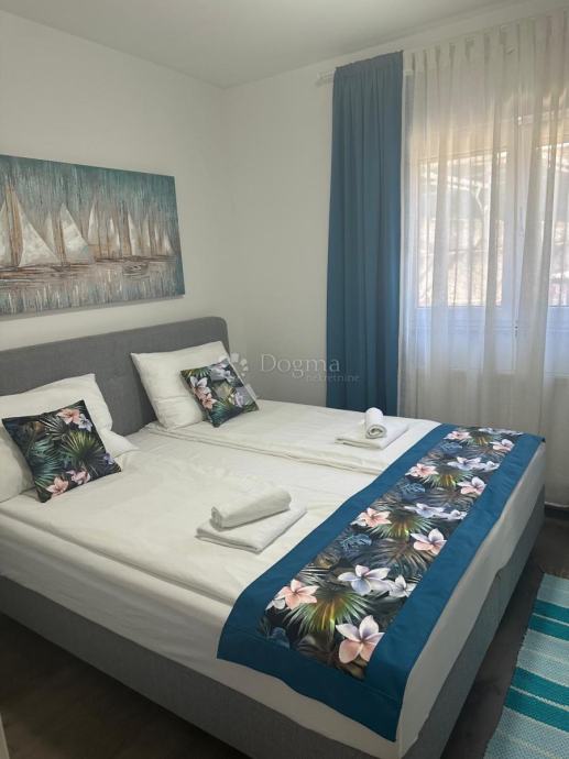 Na prodaju je prostran stan od 88,50 m² u prizemlju koji se sastoji od hodnika, kuhinje s blagovaonicom i dnevnim boravkom, tri spavaće sobe te tri kupaonice. Stan je korišten za turistički najam pa budući vlasnik može nastaviti s uhodanim poslom ili ga koristiti za udoban obiteljski život.