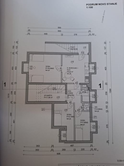 - dnevnog boravka s blagovaonicom i kuhinjom 15,23 m2