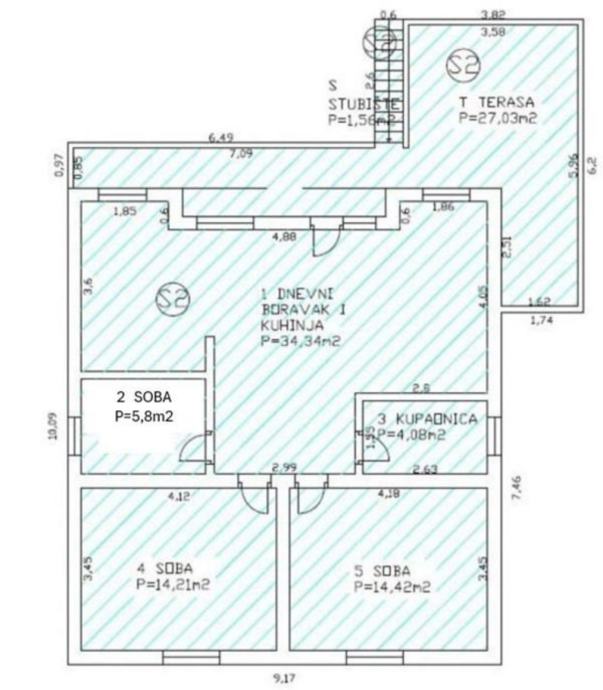 Prodajemo 4-soban stan u kući s potkrovljem i terasom (72m2 stambene površine, zajedno sa potkrovljem ima 185 m2).
