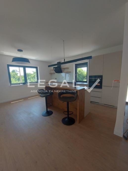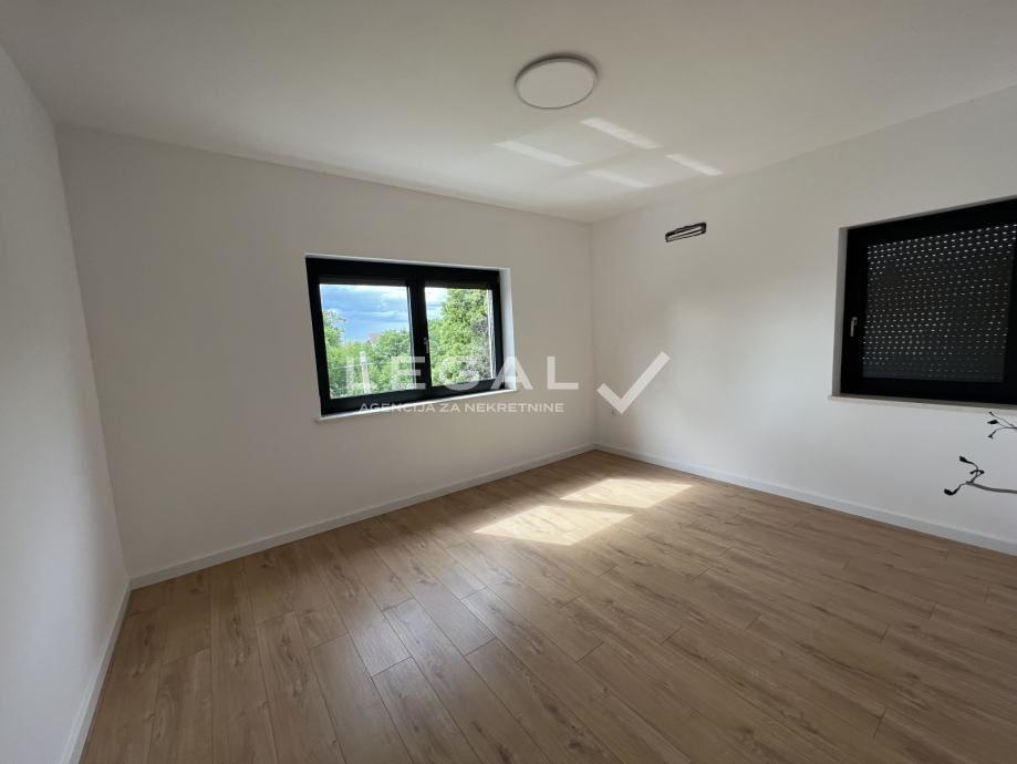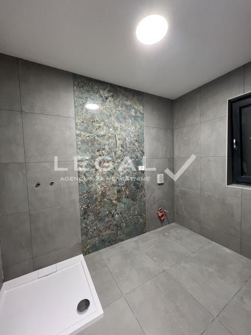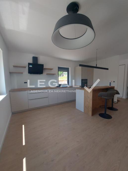i sastoji se od 2sobe,kuhinje,dnevnog boravka,2kupatila i velike terase uz stan pripada 200m2 okućnice
