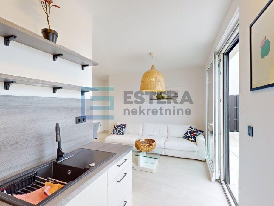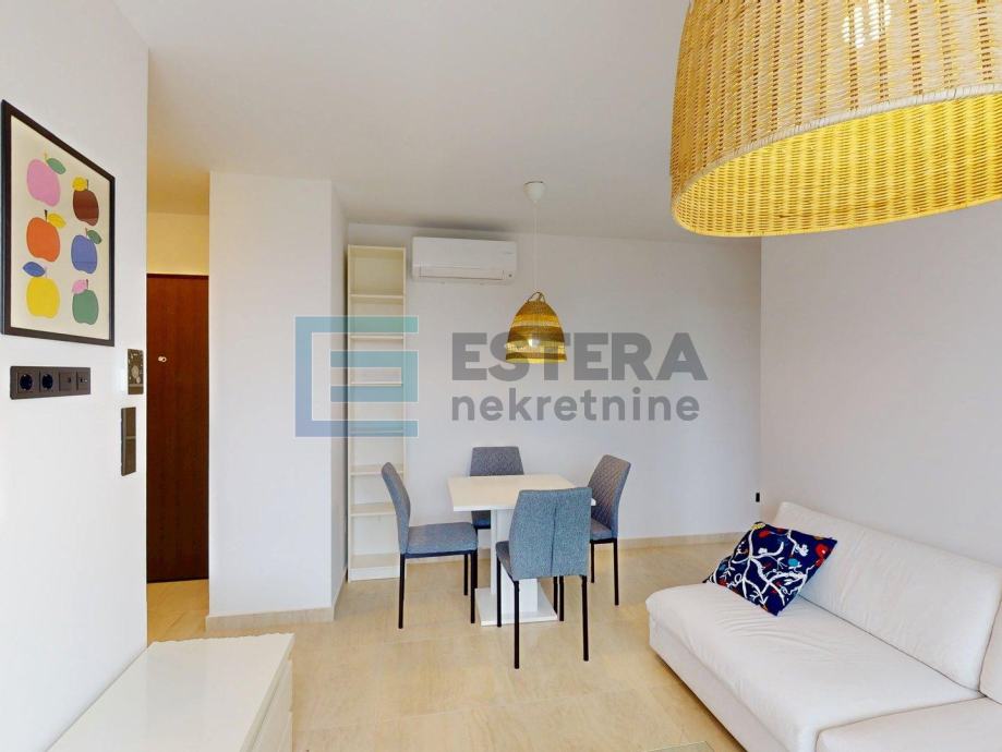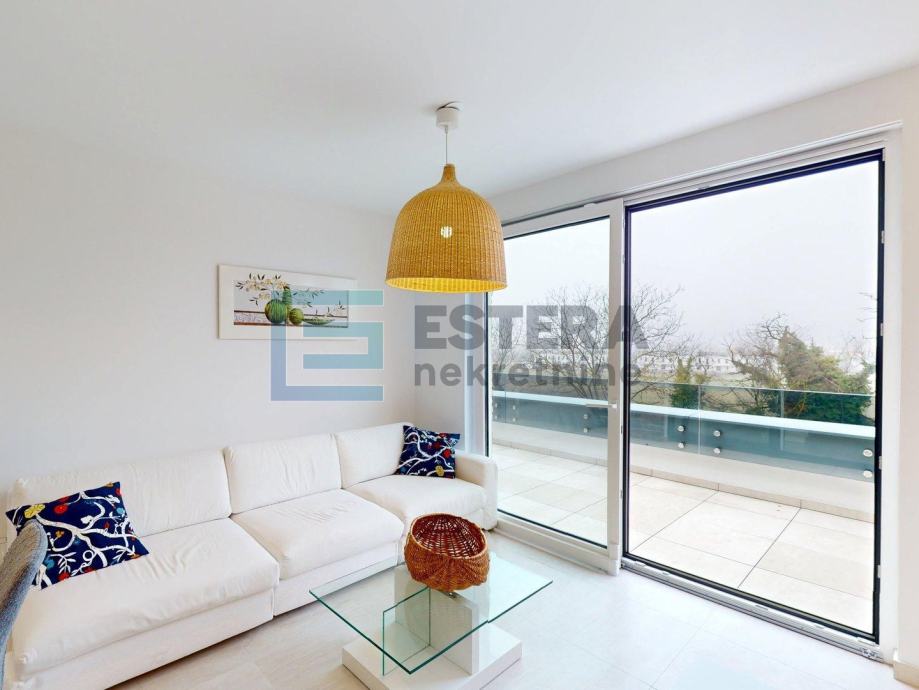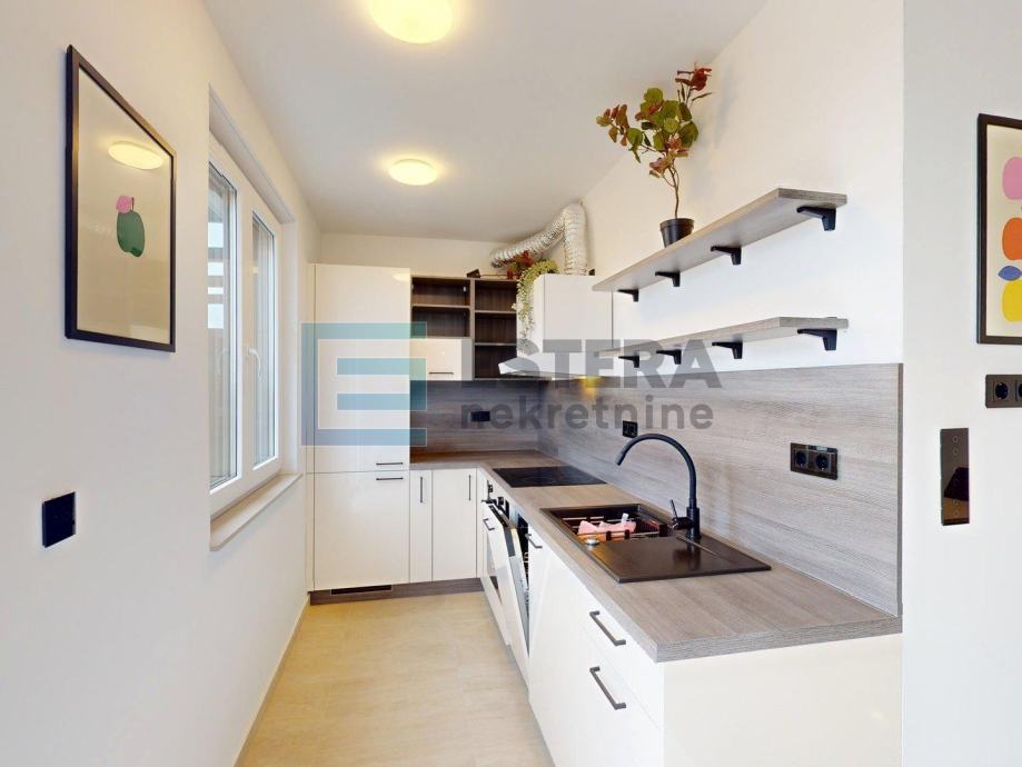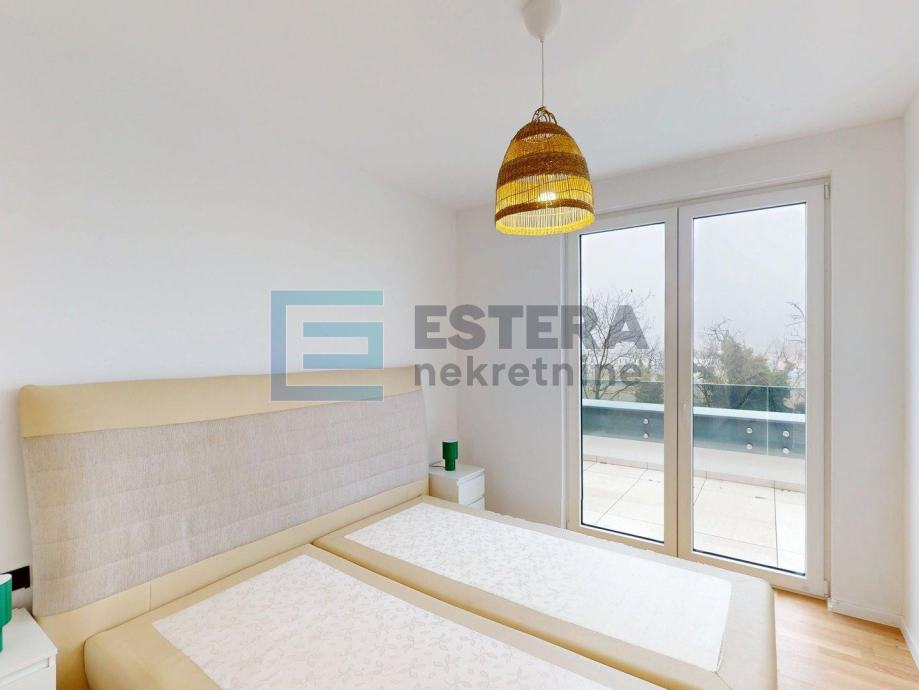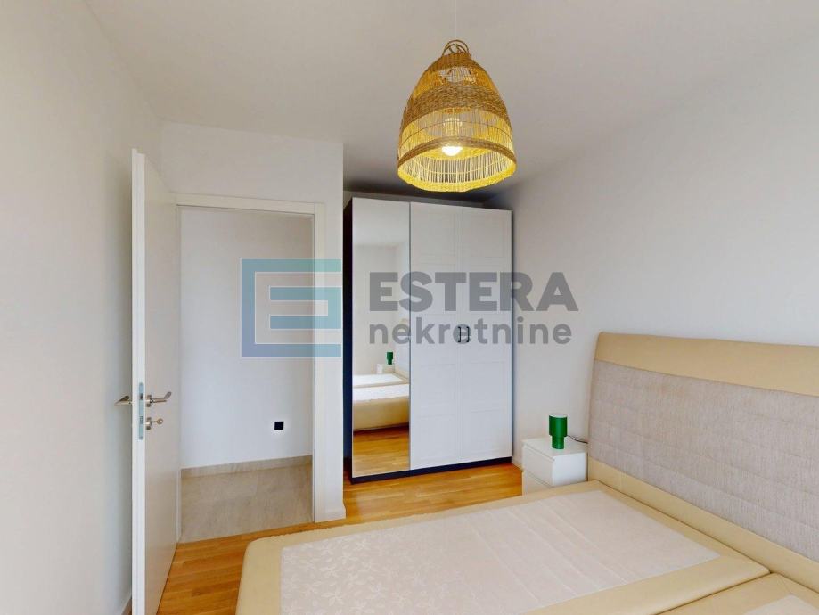 Stanu pripada i spremište površine 2,84 m2 te garažno parkirno mjesto od 15 m2. Garaža je liftom povezana sa stambenim dijelom. Stan je moderno uređen i u potpunosti opremljen, s podnim grijanjem na dizalicu topline, klima uređajem, perilicom rublja i posuđa te električnim roletama, što osigurava visoku razinu komfora tijekom cijele godine.