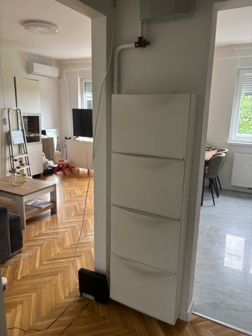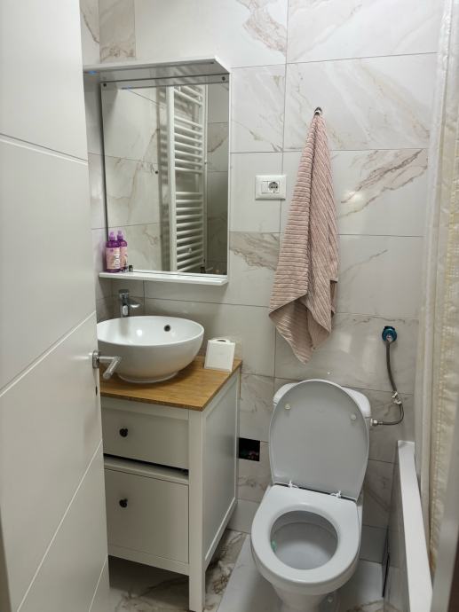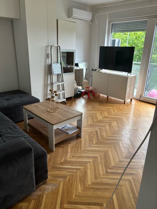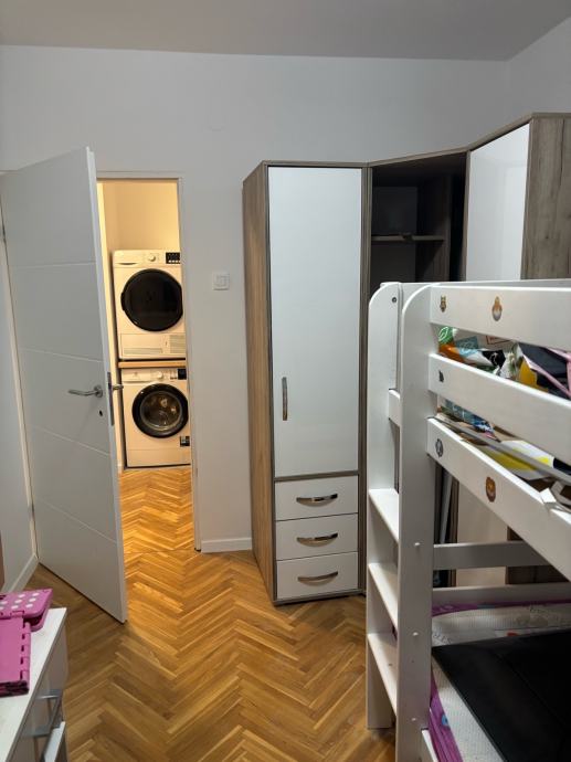 Stan se prodaje namješten sa bijelom tehnikom.(perilica,sušilica,klima uređaj,2 TV-a).