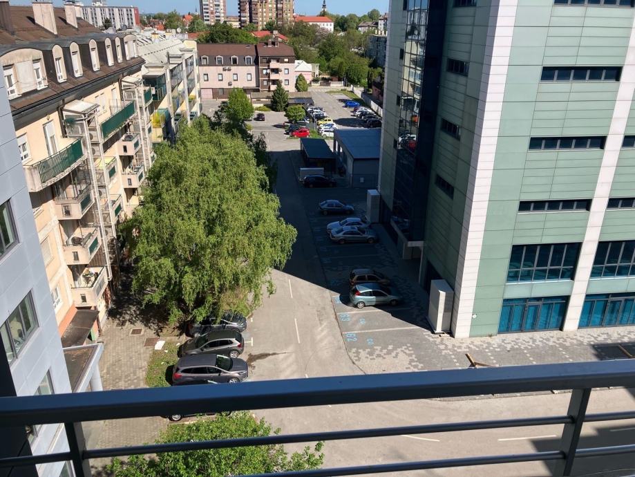 Prodaje se dvosoban stan na VI. Katu ( spavaća plus dnevna) sa balkonom i zasebnim spremištem u širem centru Varaždina. ( Frana Supila 50b)