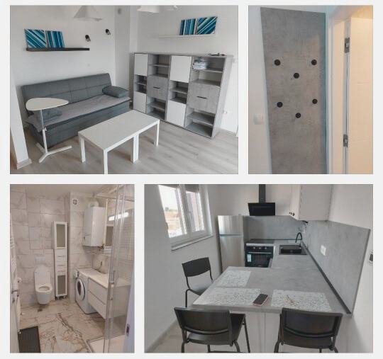 Stan je u potpunosti opremljen. Kupaonica ima WC, umivaonik i tuš, dok kuhinja sadrži namještaj i osnovne uređaje poput frižidera, štednjaka, pećnice, nape i perilice posuđa. Spavaća soba uključuje krevet i ormar, a dnevni boravak kauč, TV i nekoliko komada namještaja za pohranu.