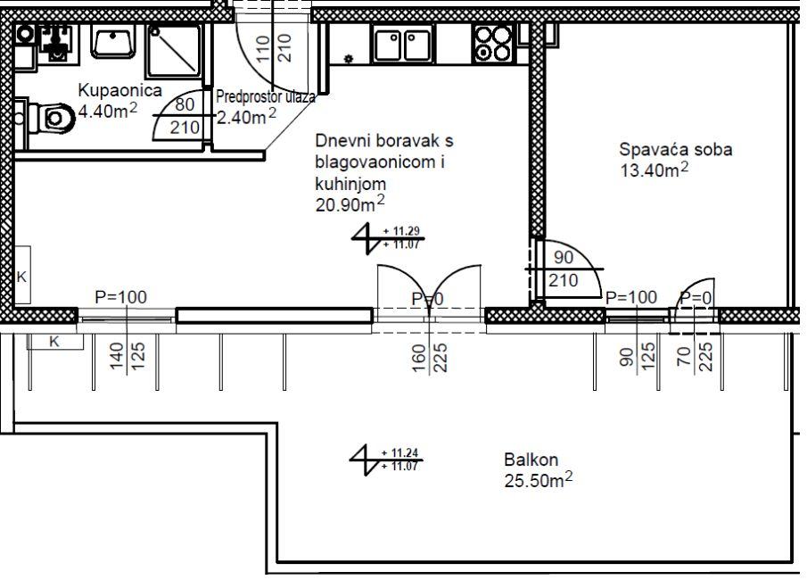Stan se sastoji od predprostora, dnevnog boravka povezanog s kuhinjom i blagovaonicom, spavaće sobe i kupaonice. Iz dnevnog boravka i spavaće sobe izlazi se na veliki balkon površine 25,5 m2, koji osigurava obilje dnevnog svjetla tijekom cijelog dana.
