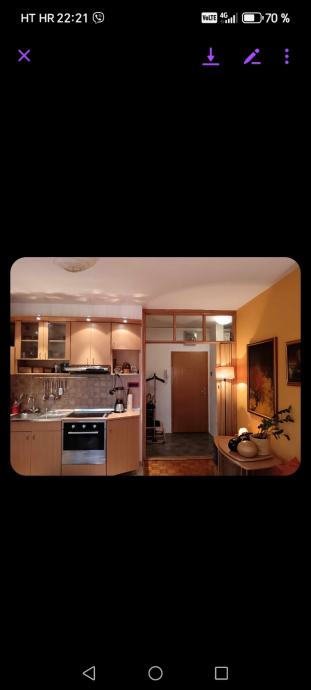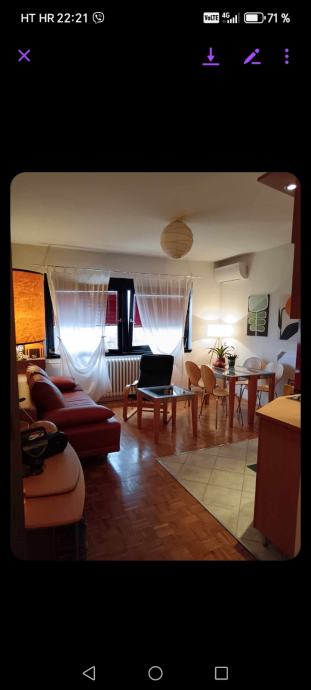 Stan na Sjenjaku, 48 m2, na IV. katu (predzadnji) u peterokatnici bez lifta (moguće je isti postaviti). Dnevna soba, sa trpezarijom i kuhinjom u jednom, druga manja soba, predsoblje, kupaonica i lođa.