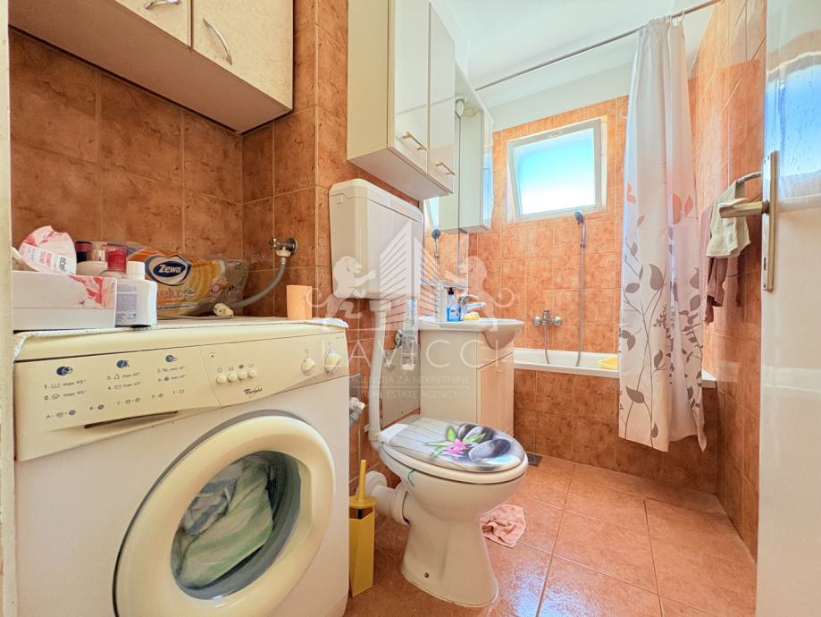 Stan je useljiv i uredno održavan, no istovremeno predstavlja izvrsnu priliku za renovaciju i prilagodbu prema vlastitom ukusu. Opremljen je PVC stolarijom s ALU griljama, a podne obloge kombiniraju očuvani parket i keramiku. Za ugodnu temperaturu tijekom cijele godine brine klima-uređaj, dok je za zimske mjesece tu i peć na drva.