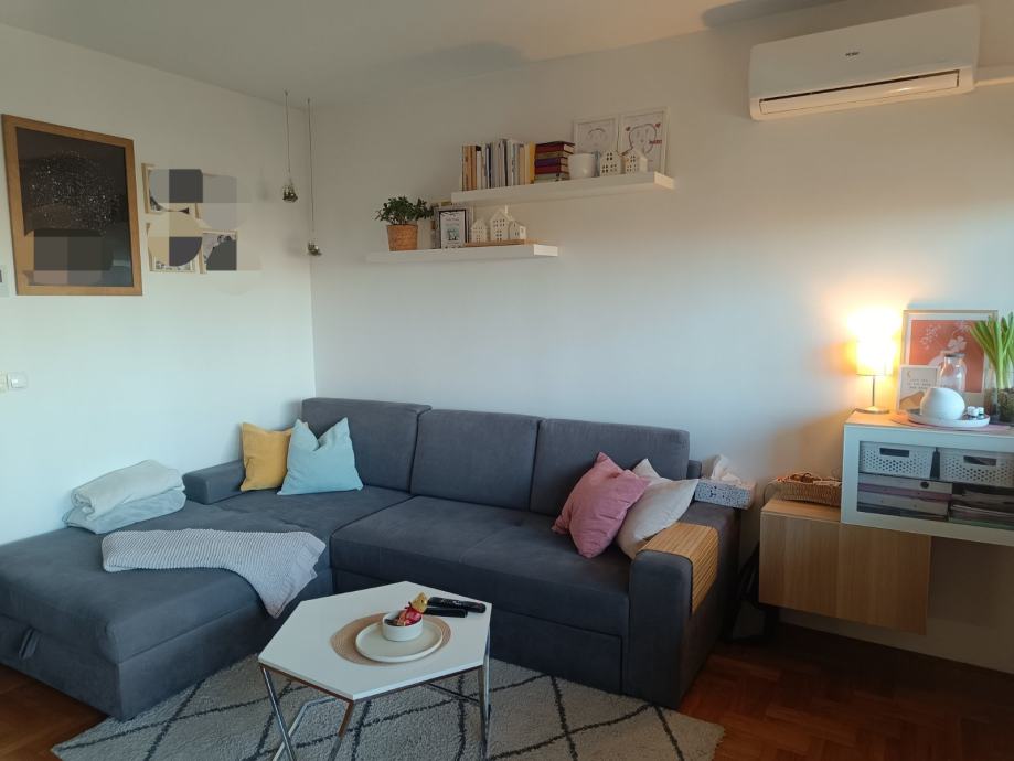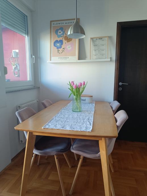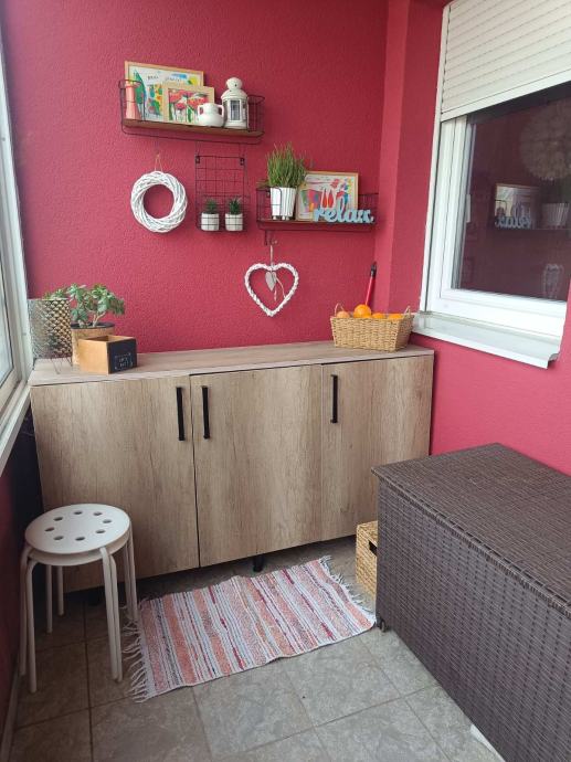 Prodaje se stan u zgradi koji se nalazi na 3. katu. Stan se sastoji od dnevnog boravka i blagovaonice, sobe, kuhinje, ulaza, kupaonice i lođe. U vlasništvu stana je parkirno mjesto za auto unutar dvorišta zgrade. U cijenu stana ulazi kompletan pripadajući namještaj (spavaća soba, blagovaonica, kuhinja s uređajima, TV, perilica rublja, vrtni namještaj).
