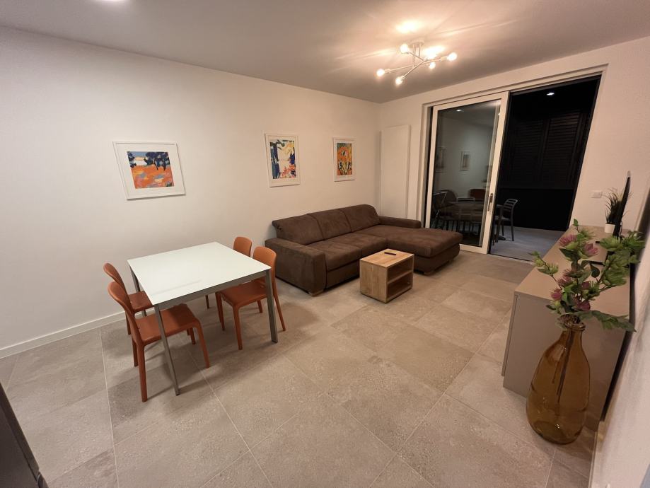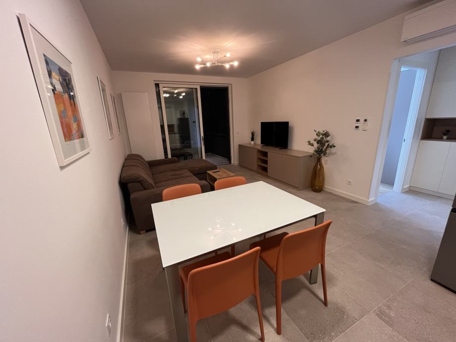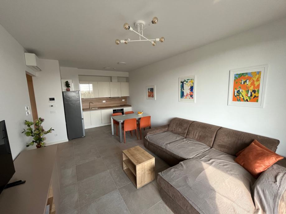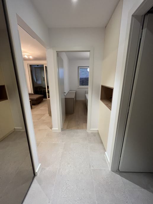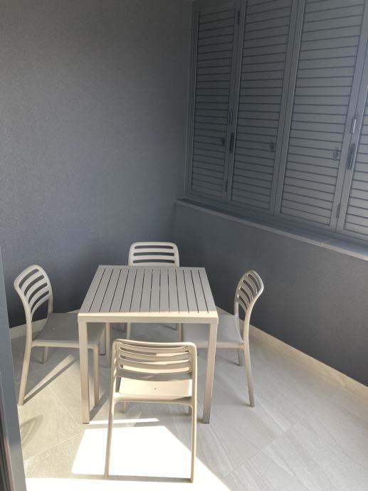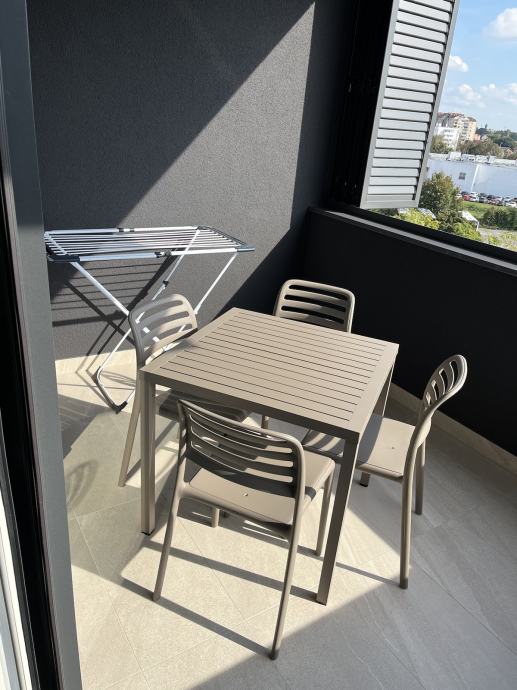 Vlasnik iznajmljuje kompletno opremljeni moderni stan u novogradnji na 5 katu juzne orijentacije (lift iz garaze) koji se sastoji od dnevnog boravka sa kuhinjom (blagavaonskog stola za 4 osobe te kutne sjedace garniture), odvojene spavace sobe, kupaonice sa tus kabinom, perilicom/susilicom rublja te natkrivenog balkona (zatvorenog rasklopnim griljama) opremljenog sa stolom te 4 stolice.