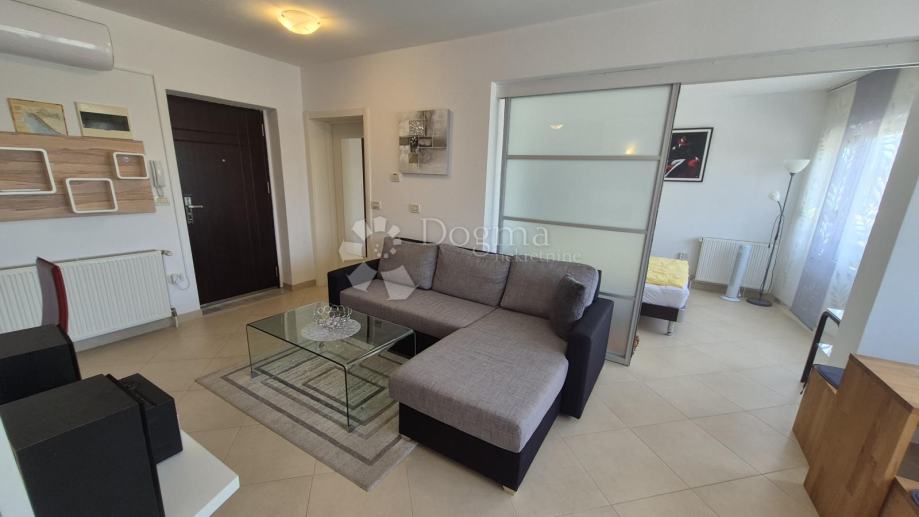 Stan se sastoji od prostrane kuhinje i dnevnog boravka u open space konceptu, dvije udobne sobe te kupaonice. Orijentacija stana je sjeverozapadna, a sve prostorije imaju prekrasan pogled na more. Stan je u potpunosti namješten modernim namještajem ne starijim od 5 godina te je opremljen s dva nova klima uređaja – u dnevnom boravku i jednoj sobi. Uz to, grijanje je moguće i na centralno grijanje putem uljnih radijatora, što omogućuje ugodnu temperaturu tijekom hladnijih mjeseci.