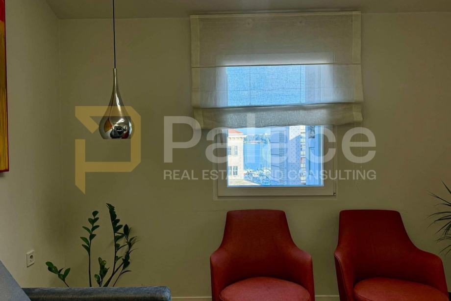 Dnevni boravak, koji već ima potrebne instalacije, pruža fantastičan pogled na grad i more, dok spavaća soba nudi mirniji pogled na dvorište i zelenilo. Stan također ima WC, a potrebno je ugraditi tuš kako bi prostor bio potpuno funkcionalan.